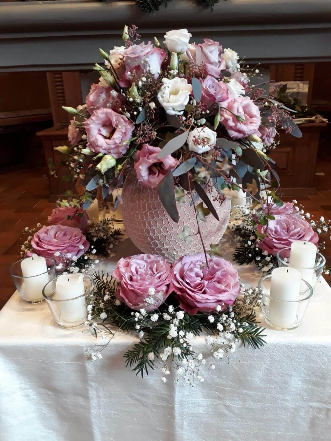 Mit liebevoll gestalteten Blumenarrangements können Sie Ihre Verbundenheit und Wertschätzung auf ganz besondere Weise ausdrücken. Ob für Särge oder Urnen, als Kirchen- oder Grabschmuck – jedes Arrangement wird individuell abgestimmt, um Ihre Wünsche und Gefühle würdevoll zu spiegeln.